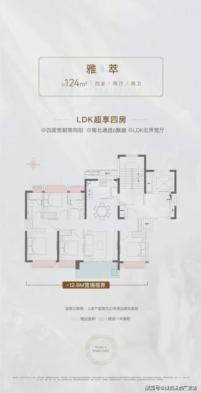 建面约124㎡的4房2卫户型,通常来说是紧凑型的户型。