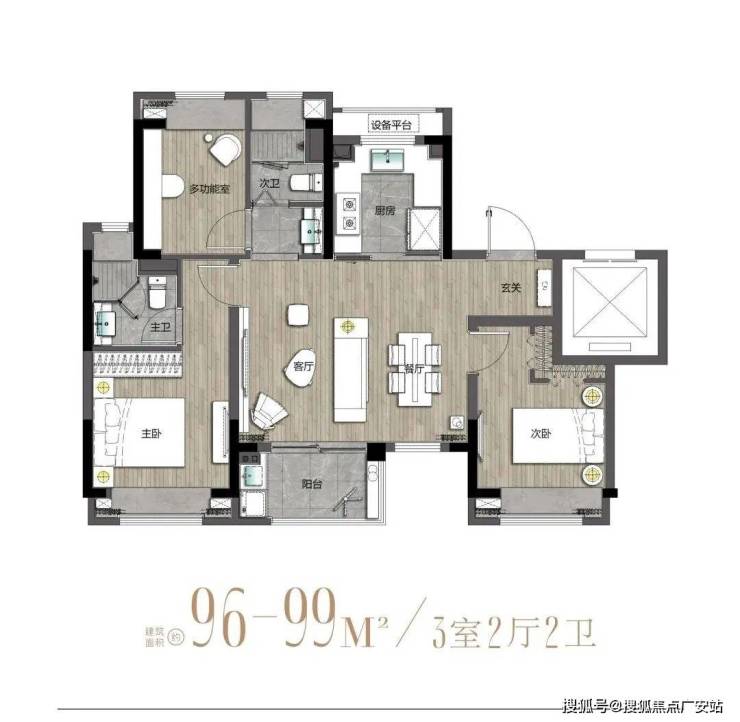 还有主卧套房、卫浴干湿分离等等细节,这个户型在同级别上车户型中,称得上尺度感、舒适度、实用性俱佳的优选户型。