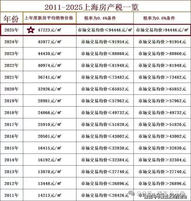 2025.12月上海最新房产税标准: