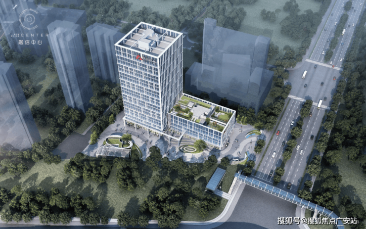 外立面:银灰色铝板+LOW-E中空玻璃,景观:彩虹装置 +屋顶花园+活力广场,智慧服务:视频监控、入侵报警、访客集成等智能化安防系统