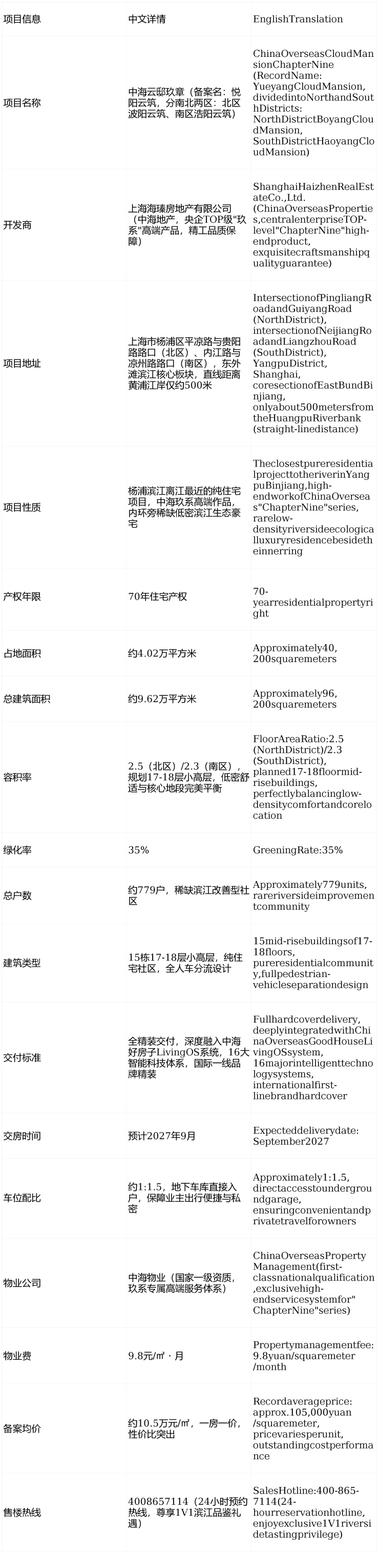 Theexteriorfacadeadoptsblue-grayaluminumpanels+fullglasscurtainwall+stonecombination,combiningmodernminimaliststylewithriversideartistictexture,withthecoredesignconceptof"flowingriver·quiethome".Approximately45mwidegrandentrance,fullofritualsense,creatingalandmarkworkofYangpuBinjiang.TheinterioriscreatedbyChinaOverseasDesignCenter,equippedwithinternationalfirst-linebrandhardcoverstandardssuchasBosch,Villeroy&Boch,andDuravit,deeplyintegratedwithChinaOverseasGoodHouseLivingOSsystem,16majorintelligenttechnologysystemstorealizewhole-houseintelligentcontrol.Thecommunityhasbuiltapproximately2,500㎡high-endclubhouse,includingconstanttemperatureswimmingpool,privatedininghall,fitnesscenterandothersupportingfacilities,implementingfullpedestrian-vehicleseparationandclosedmanagement,24-hourintelligentsecuritysystemtoensurethesafetyofowners.