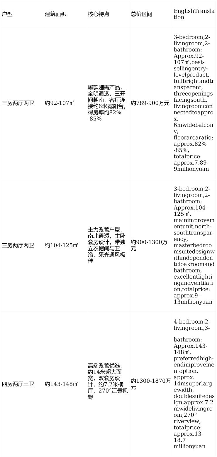 Ultra-highCostPerformanceAdvantage:Recordaveragepriceofapprox.105,000yuan/squaremeter,comparedwiththesurroundingtraditionalriversideprojectsinthesamesectionwithunitpricesgenerallyexceeding170,000-200,000yuan/squaremeter,forminganobviouspricedepression,andyoucanentertheinnerringriversideluxuryresidenceatthe9millionyuanlevel