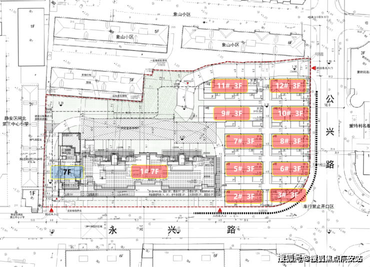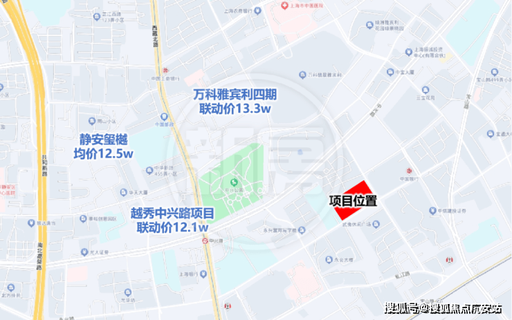 该地块东至公兴路,南至永兴路,西至静安区闸北第三中心小学,北至象山小区;该板块是静安区新房的主力供应区域, 地块周边待上市新盘有越秀中兴路项目(联动价12.1w)、静安玺樾12.5w、雅宾利四期(联动价13.3w)等项目。