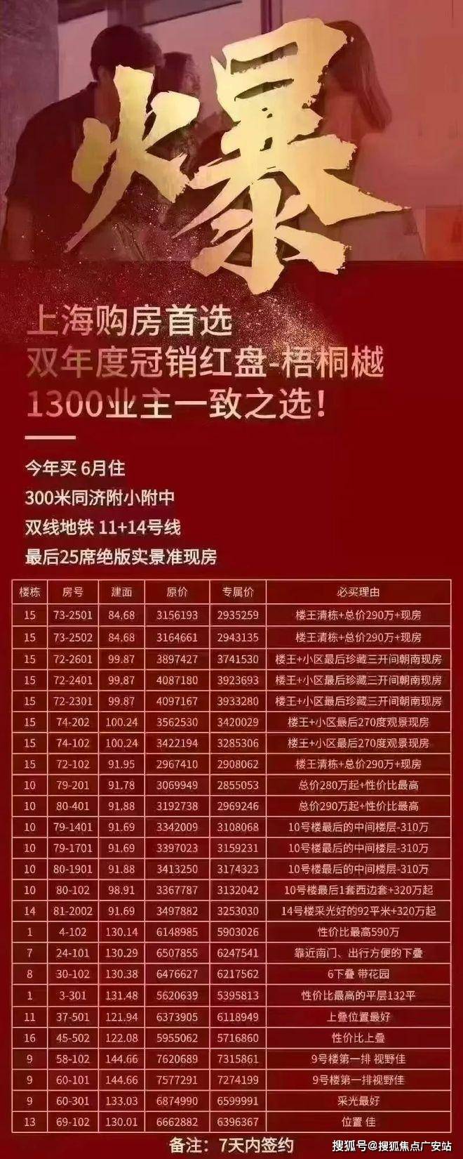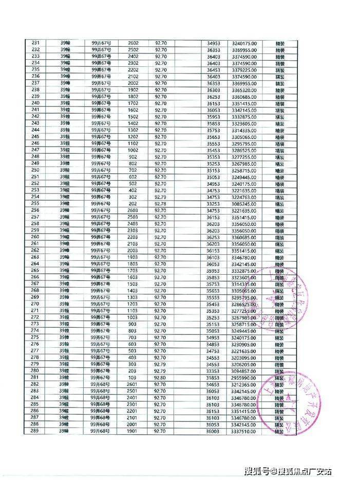 以下为项目最新一房一价表