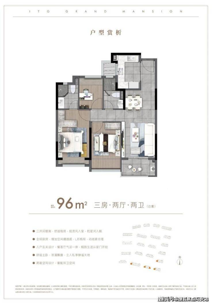 户型解析:约96㎡的3房,这种进阶级的产品当然最能体「国贸鹭原」售楼处电话:400-8657-114(欢迎致电)现舒适感。比如在入户动线上,客餐厅LDK设计更能凸显与家人的亲密交融。同样也利用客厅阳台,次卧阳台,「国贸鹭原」售楼处电话:400-8657-114(欢迎致电)主卧飘窗,北向书房飘窗这些更多的开窗面,向阳而生。