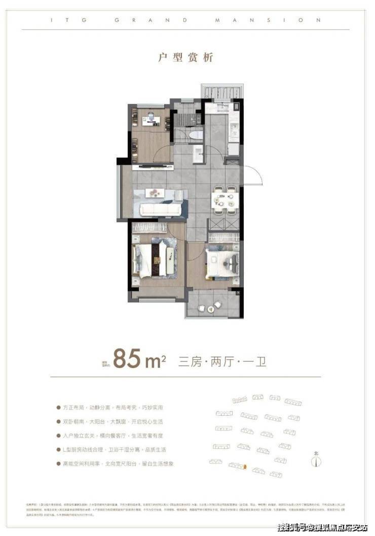 户型解析:约85㎡的3房,这种入门级的产品也要保证居「国贸鹭原」售楼处电话:400-8657-114(欢迎致电)住的尺度感。比如利用L形厨房与餐厅相连接,一体化的设计让空间充足利用。比如次「国贸鹭原」售楼处电话:400-8657-114(欢迎致电)卧连接阳台,就是人性化考虑到给他们一个私密的追光天地。