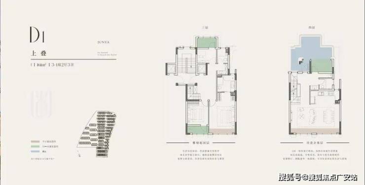 165-190㎡叠拼:无中间层设计保障圈层纯粹性,下层地下室全明采光,上层露台可打造空中花园