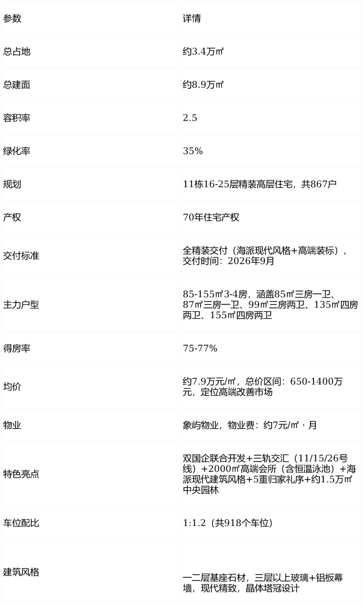 对比周边竞品(如建发海阅首府、宝华紫薇之星、中环桃源里)的价格、户型、交付时间,选择最适合自己的房源,聚焦双国企开发+三轨交汇+价格优势的稀缺价值