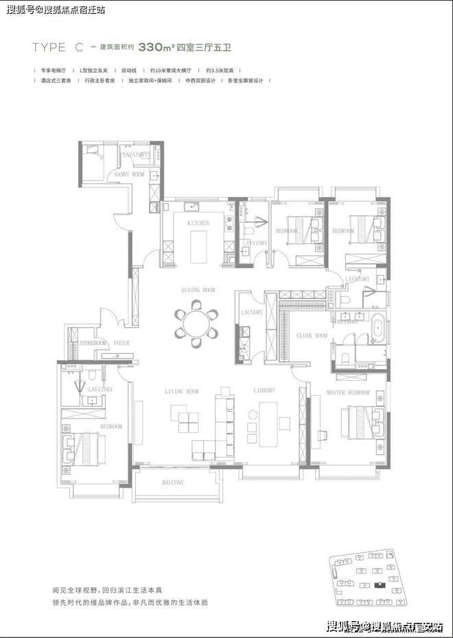 项目起步的户型都在150平以上,三期时户型门槛已经抬到了200平以上,主推的户型也是建面约190-330㎡四房两厅三卫,甚至都还是准一梯一户的设计。