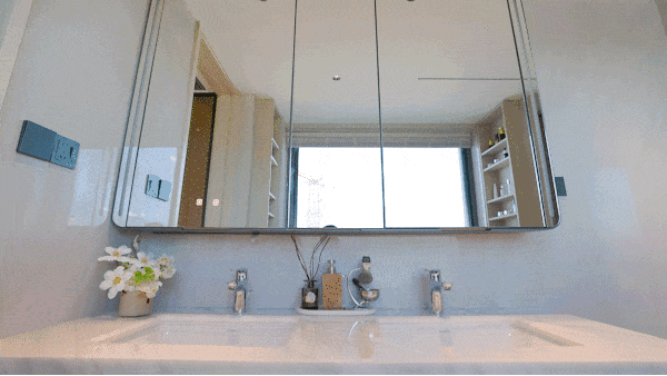 共同打造高品质洗漱动线,线性浴霸实现快速均匀取暖!镜柜巧妙收纳日常用品,让台面长久整洁清爽,更特别配备美妆冰箱,贴心照顾护肤需求!