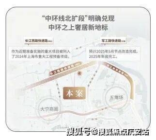 交通方面:项目紧邻长江西路地铁站(直线距离约150米),1站江杨南路,5站复旦,7站五角场。中环线北扩段明确兑现,军工路快速路25年开工,长江西路快速路列入上海市重大工程清单预备项目,快速链通城心,随着中环线北扩段的政策明确,淞南将正式进入中环时间。未来经逸仙高架,进入南北高架、内环高架、中环高架,可快速链通南北上海。