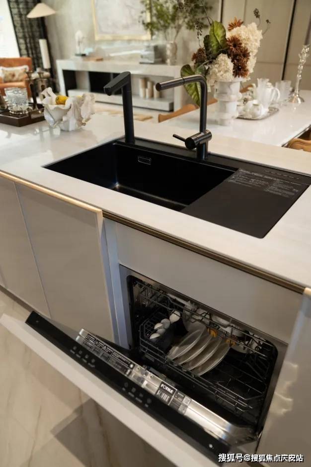 水槽下方预留了电源与空间,为加装净水器、扫地机器人做好准备.