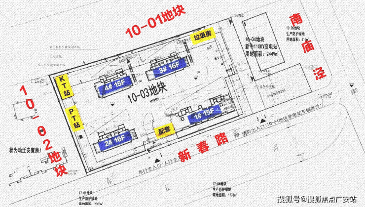 根据设计方案显示,10-03地块规划:拟建2栋15F高层住宅、2栋16F高层住宅、以及若干配套用房,规划住宅套数下限263套。