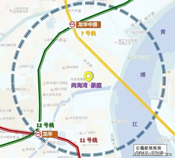 地铁:7号线和12号线龙华中路地铁站,3站直达静安寺和环贸。