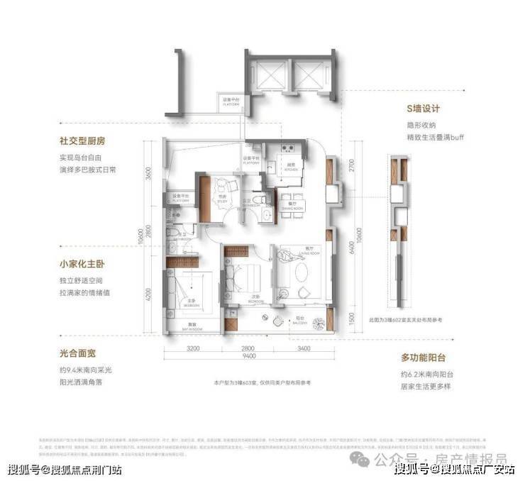 【光合面宽】约9.4米南向采光,阳光洒满角落
