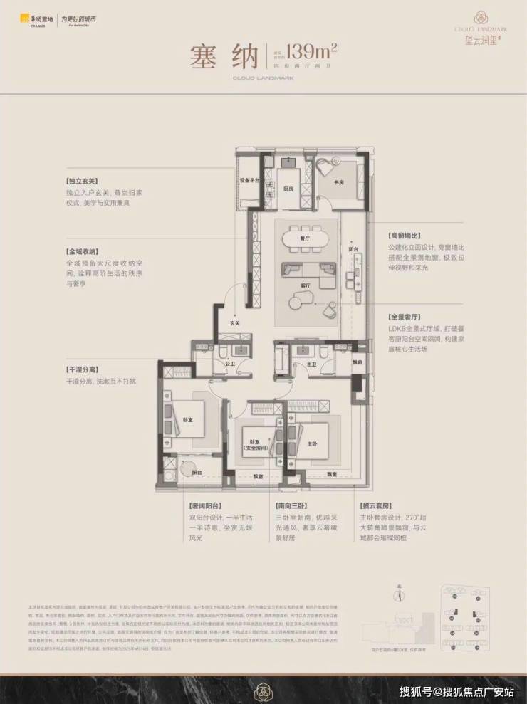 【奢阔面宽】约14米非凡面宽,奢阔南向四开间,舒展阳光奢居大境 【阔境阳台】南向约7米超大全景阳台,50%计容空间实现100%的无界体验