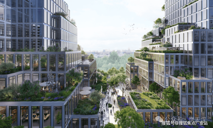 而塔楼之间在底层形成“城市峡谷”,这里是一个公共的开放式互动空间。