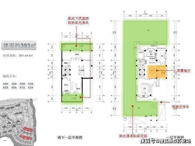 建面约393㎡双拼别墅,花园面积251-413㎡