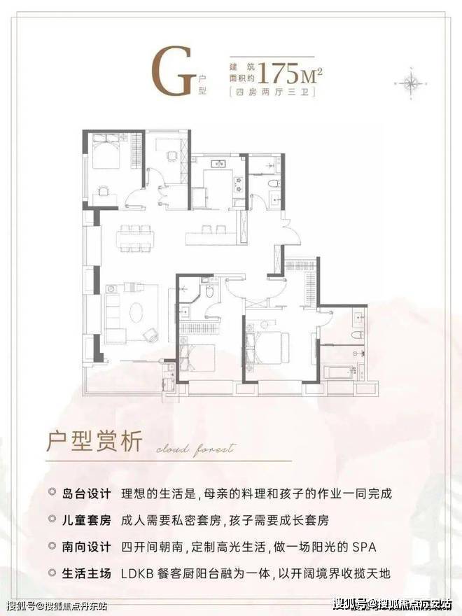 建面约175m²4房2厅3卫户型▼
