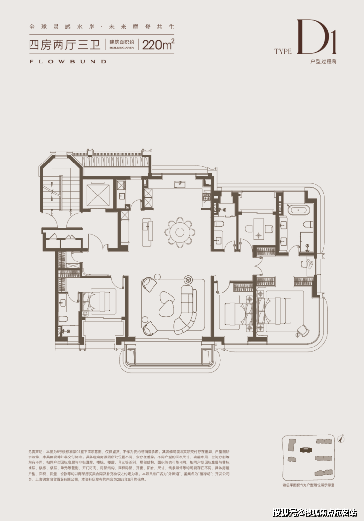 220㎡ 四房三卫:2979-3306 万(三阳台 + 全明卫,L 型转角观景)