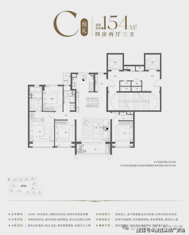 一园三堂的归家动线,象征着东方人文礼序。建筑风格造型,灵感源自金镶玉设计,提取其“曲”的形和白金配色应用到塔楼立面上,彰显项目的温和雅丽与尊贵典雅。