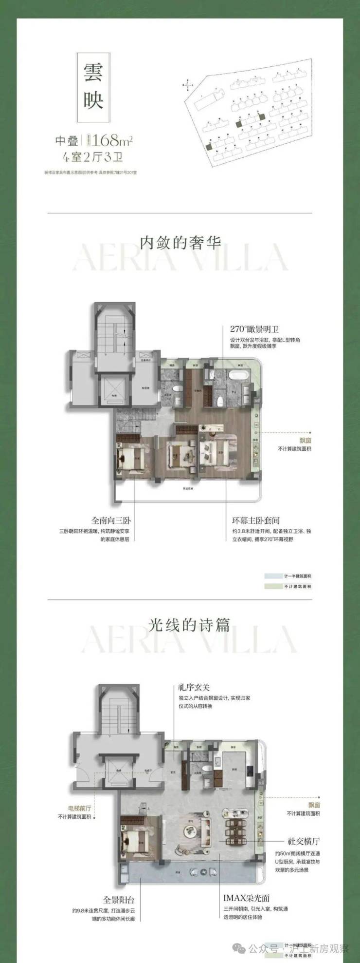 极致通透:中段通过窗墙比优化(从0.56提升至0.67),使立面更显轻盈通透,最大化引景入室。