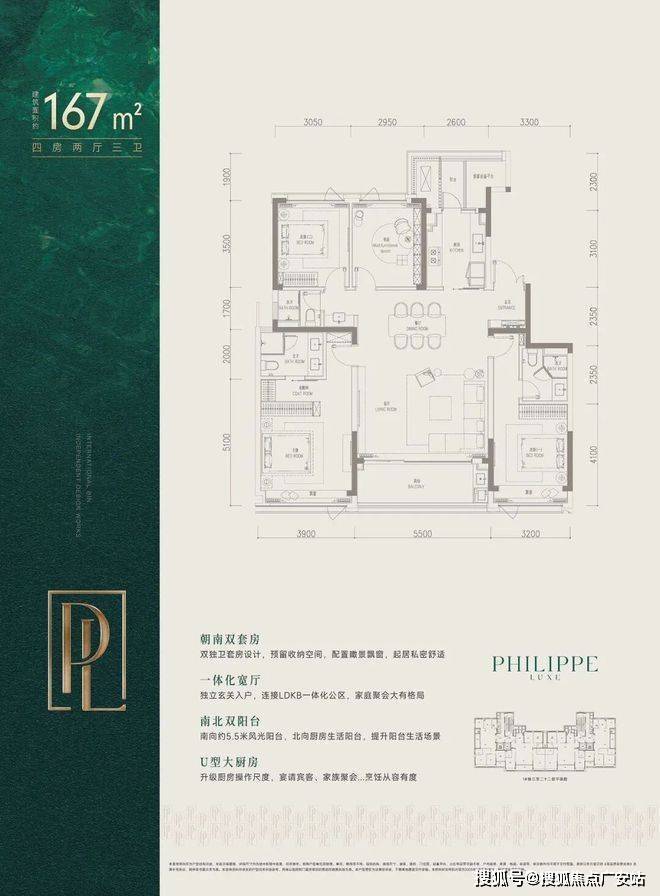 而建面约167㎡则是四房三卫格局,双套房设计,约40㎡的剧院式横厅,客餐一体,气场全开。市北、滨江的不少改善家庭,都在等它上线。