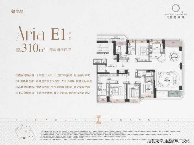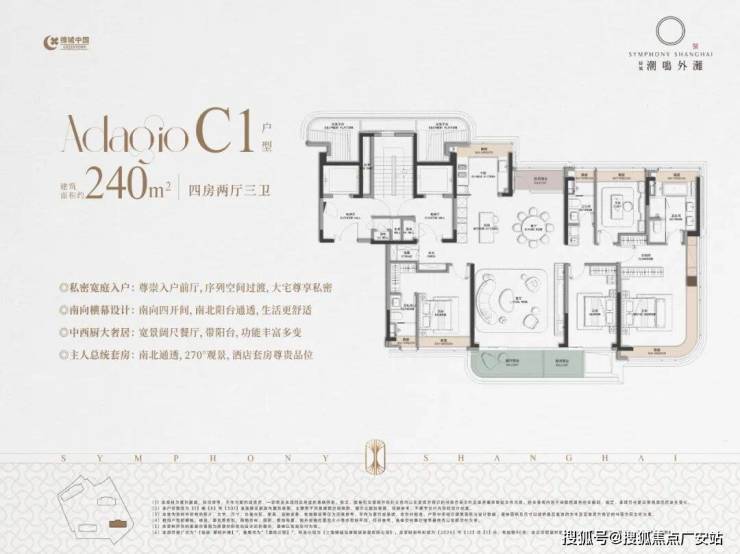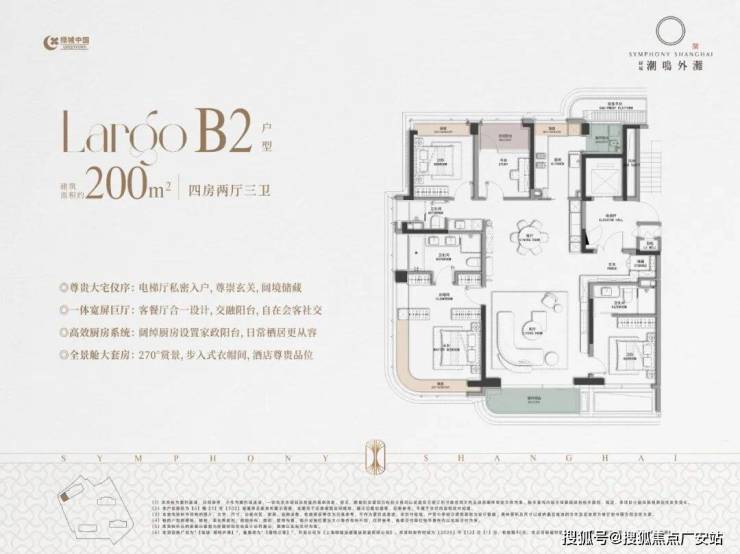社区亮点:约2280㎡全地上Symphony会客厅(12米挑高、悬浮泳池、水晶吊灯)、约1.2万㎡中央园林、四重归家礼序、全石材外立面