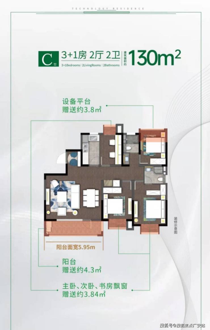 三居室:96-130㎡,总价约120-154万元