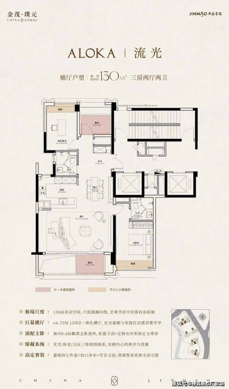 130㎡ 三房两厅两卫:三开间朝南、LDK 一体化、约 6.7 米面宽;内环顶豪入门,总价 1819 万起