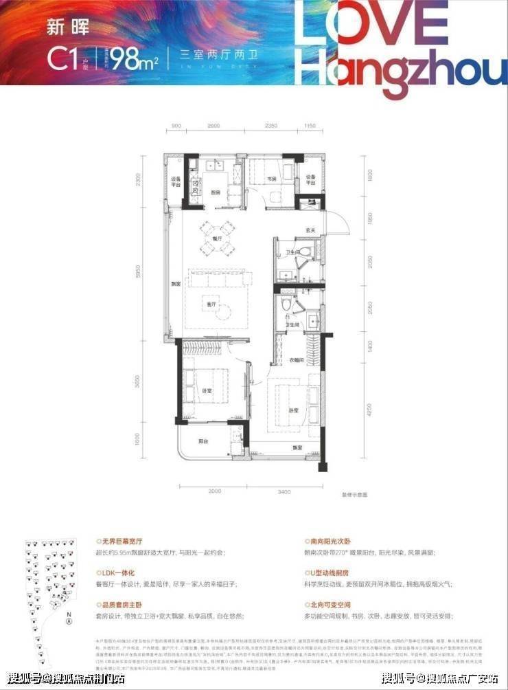 建面约98㎡边套横厅,是当下的“潮流爆款”。餐客厅一体带约5.95米超长飘窗,主卧带衣帽间+独立卫浴+宽大飘窗,居住舒适性大幅度提升。