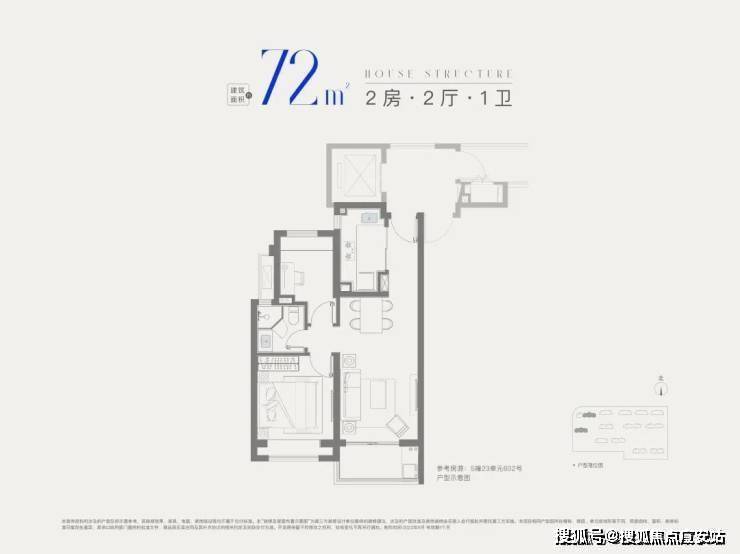 建面约72㎡2房1卫,做到双开间朝南+全卧室带飘窗,总价低至2字头,是刚需上车2房的优质之选。
