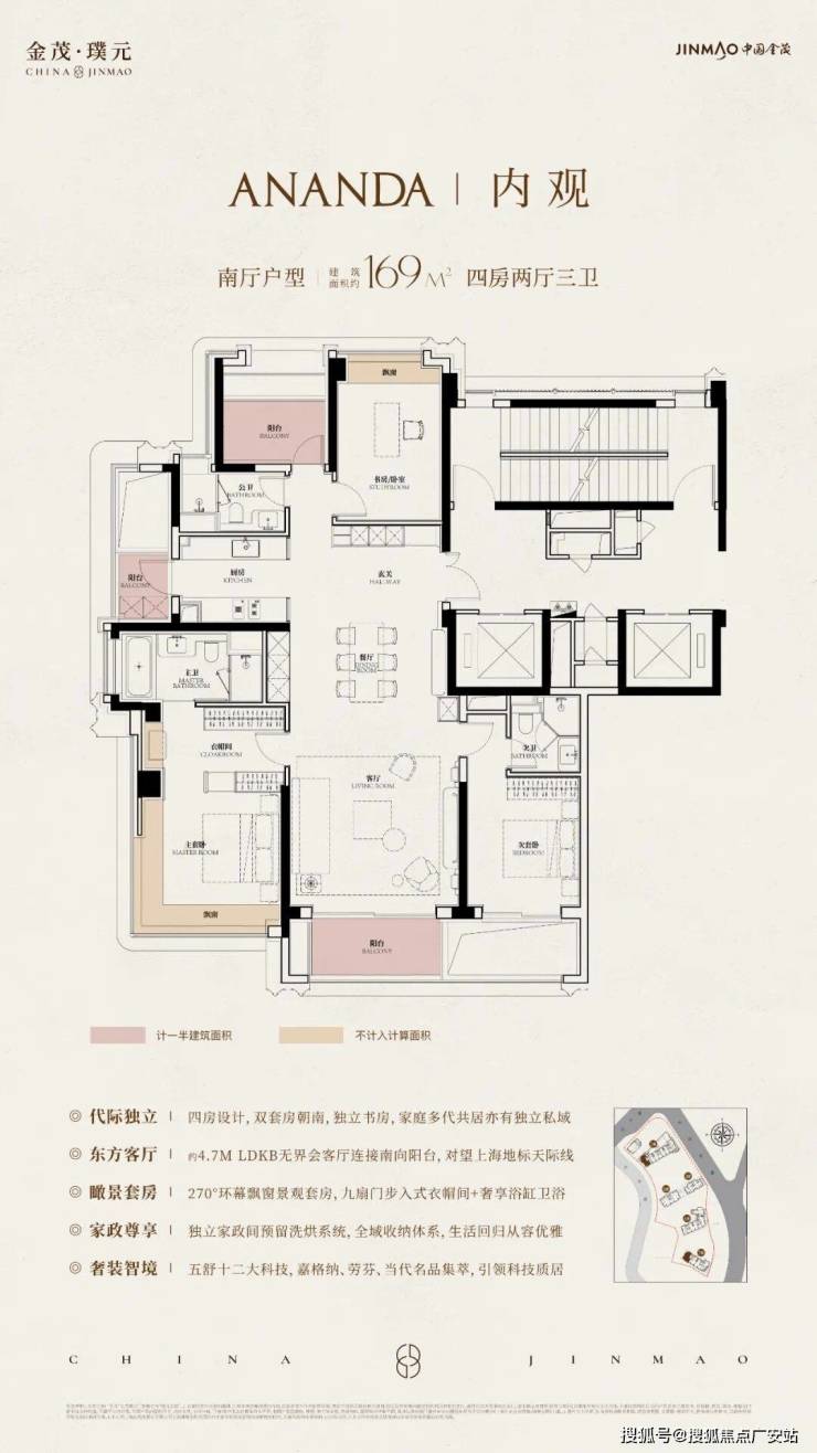 前期少量建面约130-172m²3-4房,类一梯一户无连廊设计、装标4000元/m²。