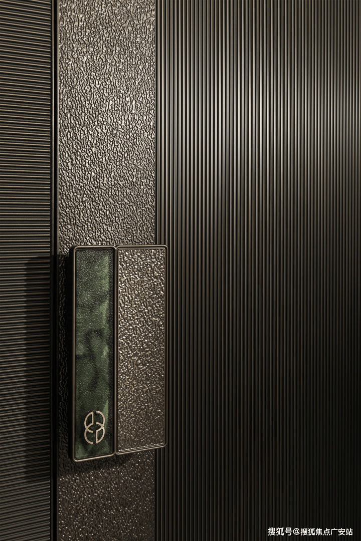 2.5米高的铸铝钢甲子母门,内嵌琉璃门锁,门把手皆以定制璞系族徽辉映,开阖之间,诠释了“单扇门走一人,双扇门走礼仪”的礼序,厚重的归家仪式感,自此打开。