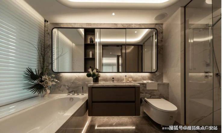 卫浴空间同样是“国际大牌集合地”:德国劳芬智能马桶、法国当代龙头花洒,主卫更是配备双台盆+独立浴缸+淋浴区,满足高端居住的舒适需求。