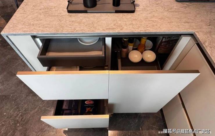 为使厨房成为「真正幸福之地」,璞元在各个细微之处倾注关怀,从地柜拉篮系统,到上柜系统,再到抽屉分格系统,浅抽与深抽搭配,让整个厨房空间,既百变,又充满秩序。