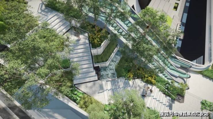 值得一提,项目高线公园打造“三大花园·六大游园”体系,提供丰富的体验场景,而在楼王东侧就是三大花园的其中之一,也是艺术感最强的一个花园,将结合艺术装置和台阶,为业主提供舒适闲坐、眺望树冠景观的空中露台.