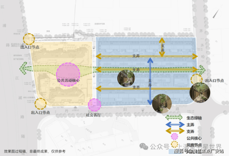 一条生态绿轴串联生态系统,一条南北主弄串联四条支弄,步移景异。