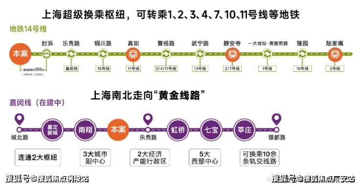 交通能级不断跃升:14号线和 嘉闵线 (在建中)双轨交汇,步行约200米14号线地铁口,14号线为高能级地铁线,5站普陀,30分钟直达静安,且始发有座,出行舒适;黄金走廊嘉闵线加速建设,约3站虹桥枢纽,未来可速达七宝、徐家汇、莘庄等核心区域。项目周边开泰路即将建成,绿野谷二期路段、骏达路、童家桥路、昌瑞路、涟澜路已启动建设,预计2026年建成。