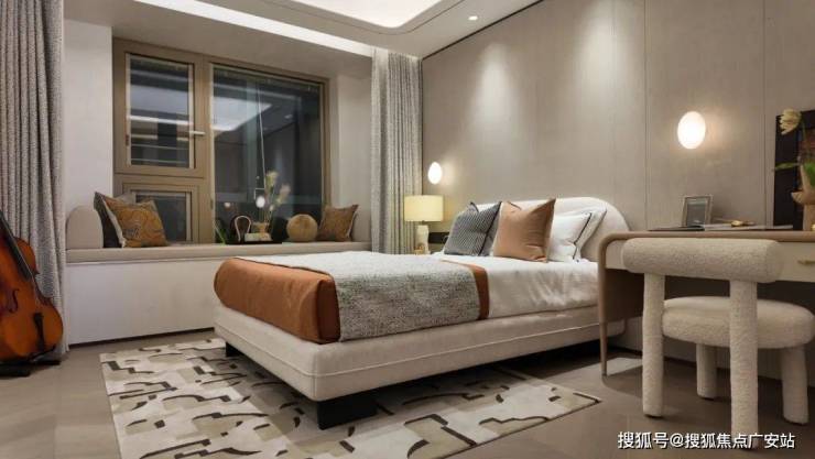 The secondary bedroom is also a suite configuration, separated from the master bedroom to the left and right of the living room. In this way, the two generations not only maintain their own independence and privacy, but also have similar comfort levels.