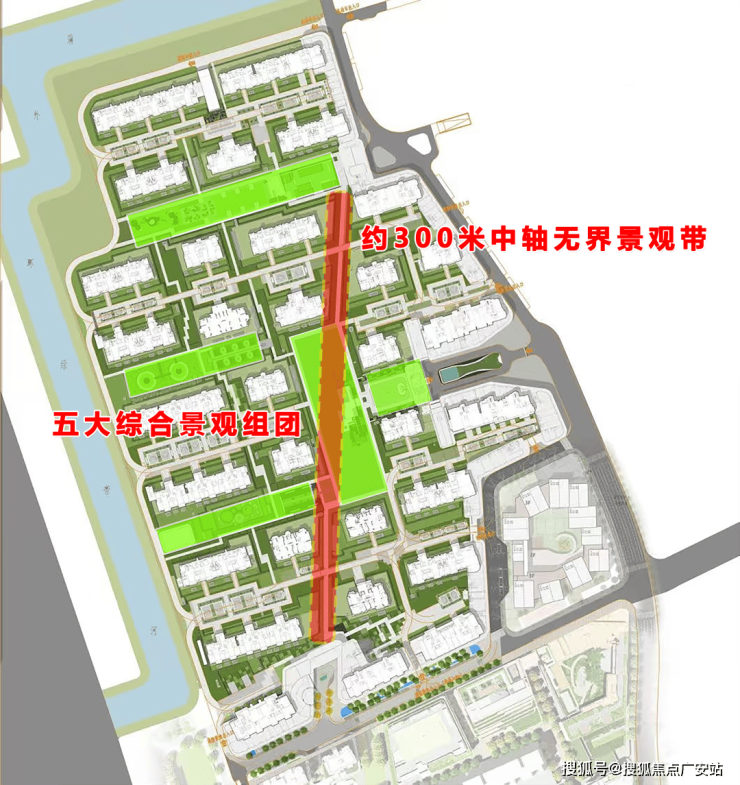 约300米景观中轴贯穿社区中心