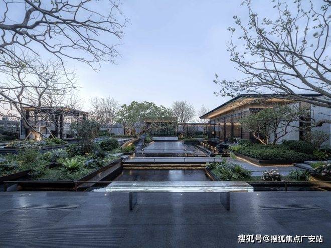 打造长约200米、近1000㎡水系景观,贯穿入口、庭院、归家轴线和景观主轴,采用五重造水形态,可行、可望、可游、可居,正是中式园林所追求的空间意境。