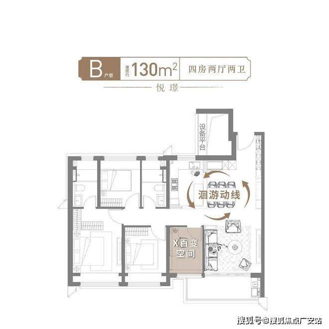 全景面宽+无界通厅+高附加值+收纳天花板,130㎡的面积直逼140㎡的尺度感!