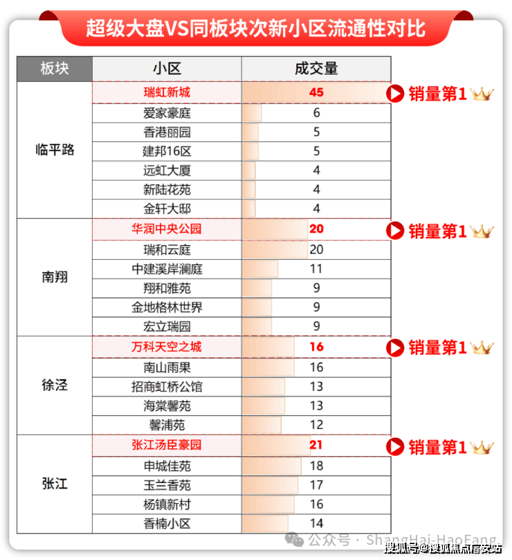 从过往表现来看,但凡能定鼎区域大盘的项目,比如瑞虹新城、汤臣豪园、华润中央公园、万科天空之城,首先销量即流通性区域第一!