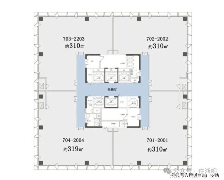 标准层户型:四居室格局(写字楼办公布局)-1-9