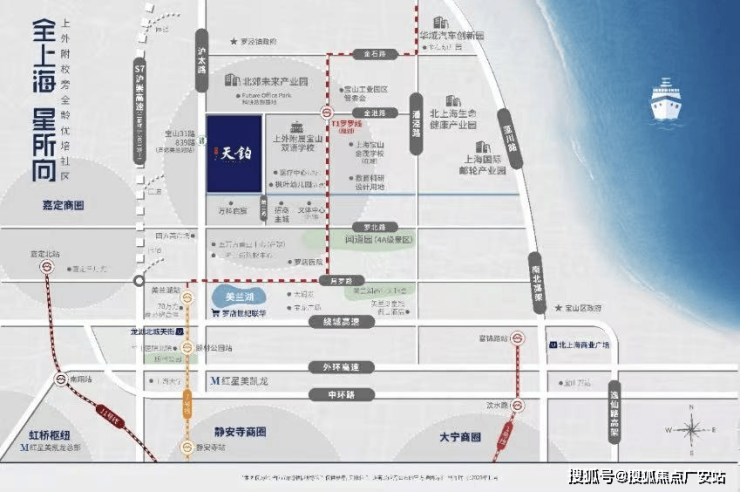 上海·宝山天铂位于北郊未来产业园南面,东至萧云路,南至沪品路,西至沪太路,北至金池路。