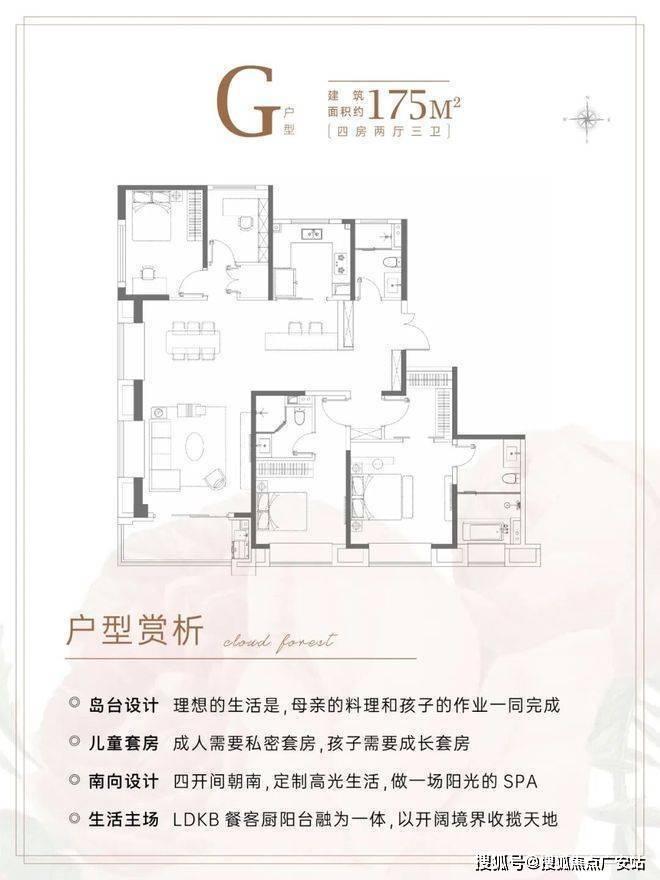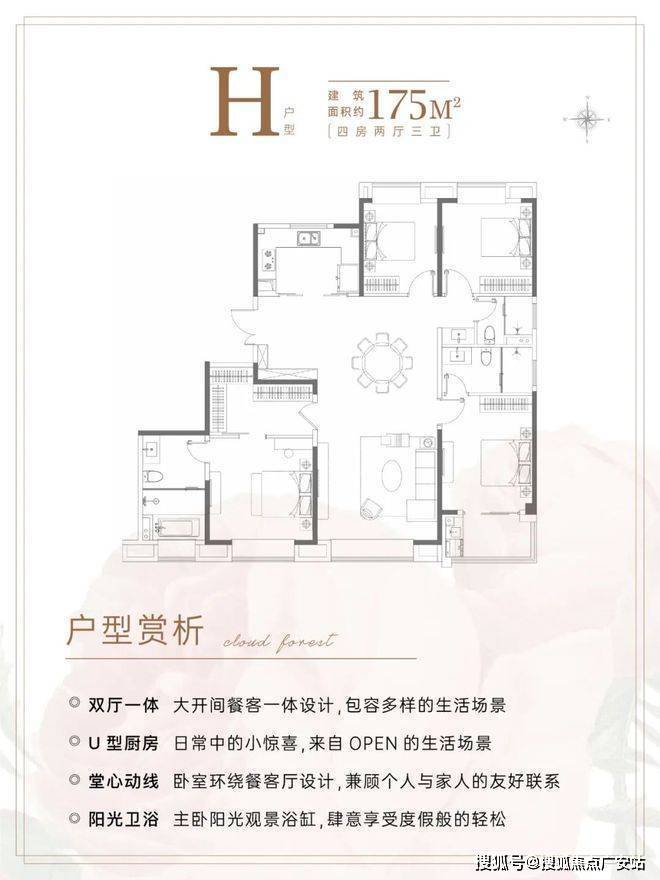 建面约175㎡4房3卫,几乎是上海改善的终点户型。
