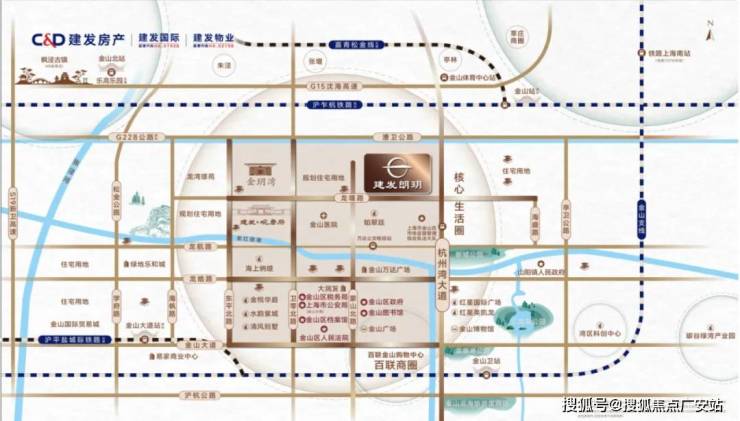 项目所在位置,近距金山铁路,快速直达上海南站,无缝换乘1/3/15号线,畅达全城,快捷直上沈海高速,直达大虹桥,日常丰盛从容,出行便利通畅,现代、繁华、诗意的生活盛宴,正于此拉开华丽大幕!