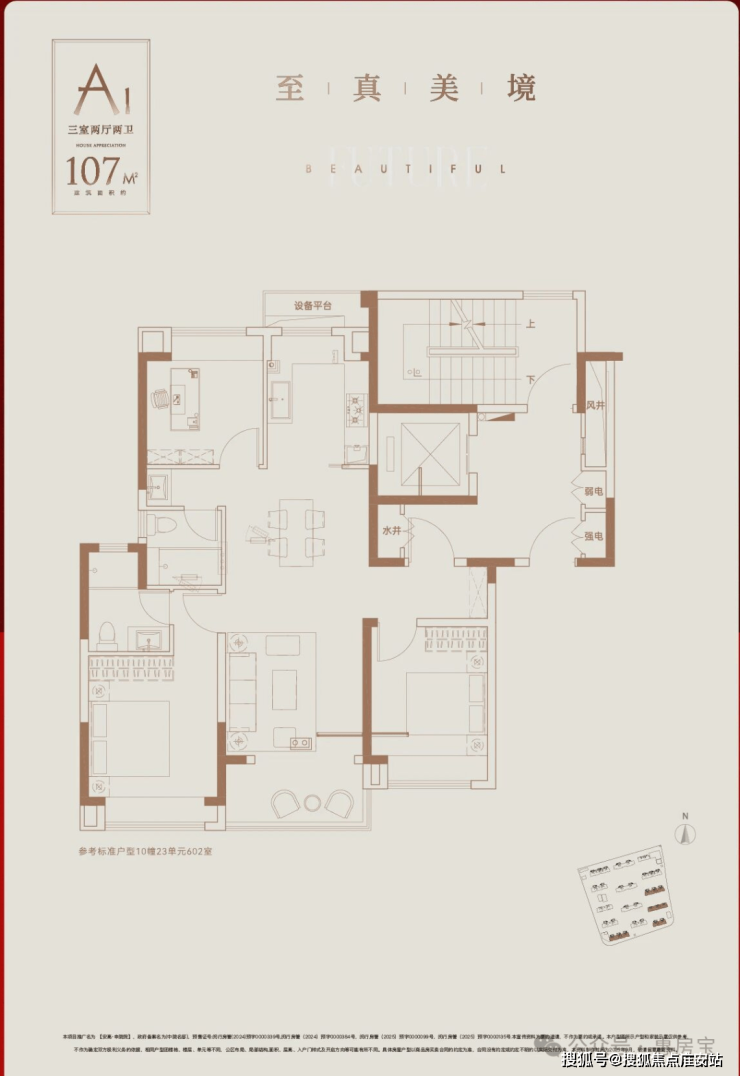 电视背景墙采用岩板交付,纹理自然,质感高级,彰显出主人独特的品味与格调。每一处装饰细节都经过精心考量,力求为业主打造一个既美观又实用的居住空间。还有建面约107㎡3房实景样板房同步公开,实现小面积里的“大满足”。整体面宽约9.8米,南北通透,所有卧室以及厨房都有飘窗设计,各个功能区域划分合理,动静分区明确,既保证了居住的舒适性,又满足了家庭成员不同的生活需求。