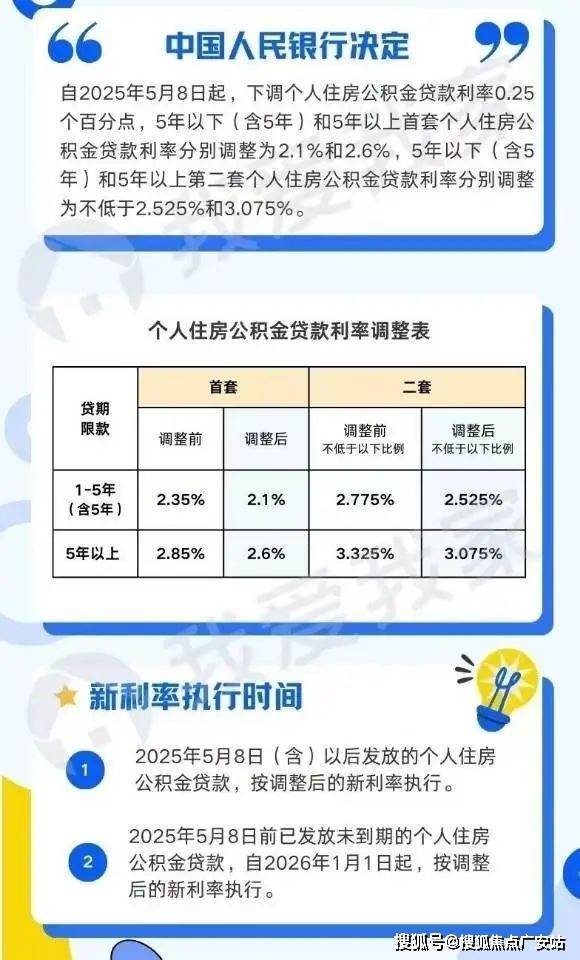 自2025年5月8日起,下调个人住房公积金贷款利率0.25个百分点